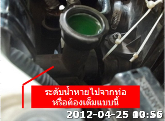 ปรกติครับ ระดับน้ำใต้ฝาหม้อน้ำจะไม่เต็มคอครับ อยู่ตรงระดับเหนือรูท่อด้านล่างครับ มีช่องว่างของอากาศอยู่นิดนึงครับ เผื่อเวลาน้ำขยายตัวในหม้อน้ำครับ แต่ระดับน้ำในหม้อพักต้องคงที่ด้วยน่ะครับเวลาเครื่องเย็นแล้ว ผมเจอจนซึ้งแล้วครับ เรื่องความร้อนเนี่ย ทำจนตอนนี้ใช้งานได้ปรกติแล้วครับ แต่ก็ต้องคอยดูแลเรื่องน้ำอยู่เสมอน่ะครับ ไม่รู้ว่าน้ำมันจะรั่วตรงไหนอีกครับ