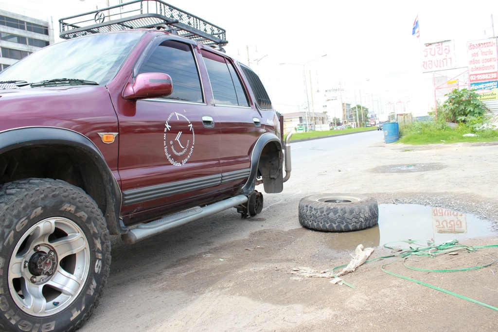 ถนนซ่อมสร้าง ปทุมธานีเป็นถนนเส้นน้ำท่วมขังนานที่สุดเส้นหนึ่ง วันนี้ผ่านไปยางเส้นหลังซ้าย+เพลาก็หลุดไปกองบนถนนสายนี้ ขอบคุณช่างยุทธกะช่างใหญ่