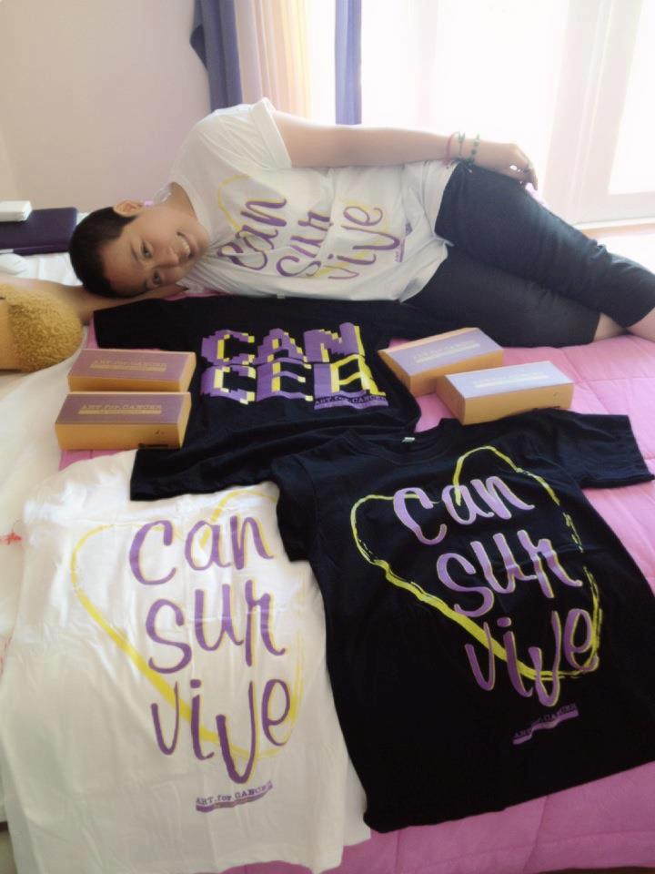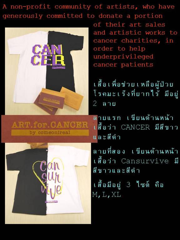 !!! เสื้อการกุศลลาย CAN SUR VIVE และ CANCEL CANCER เพื่อนำรายได้ในส่วนของกำไรทั้งหมด ไปช่วยเหลือผู้ ป่วยมะเร็งยากไร้ ::ไซส์ M (รอบอก 36"), L (รอบอก 38") ,XL (รอบอก 40")