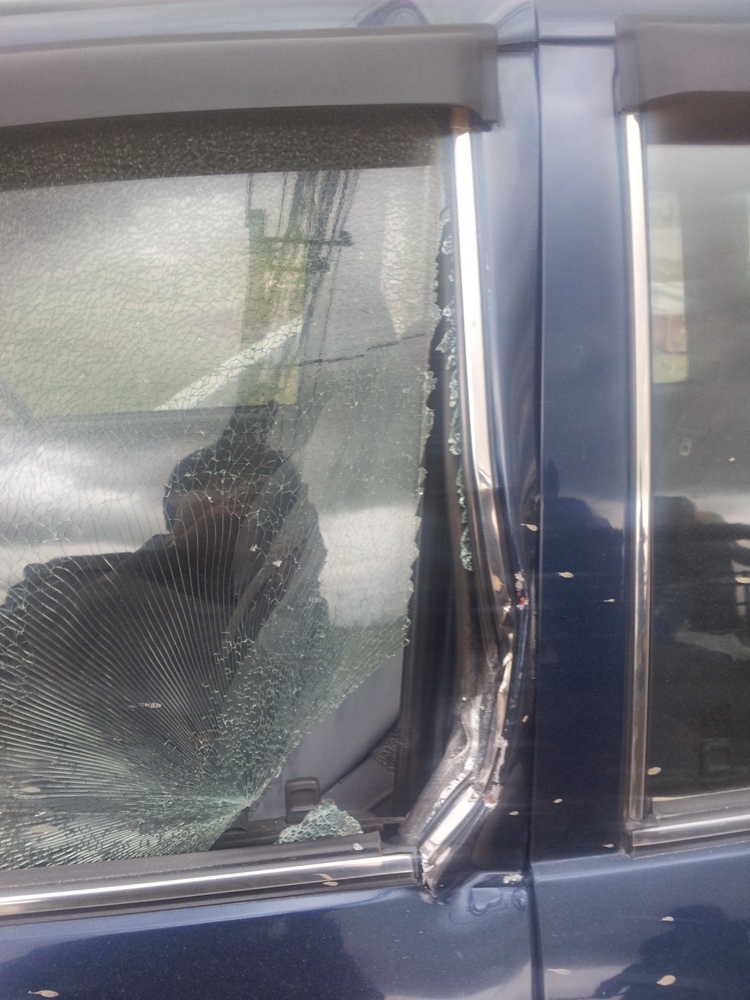 จอดอยู่ทางเข้าไซร์งานก่อสร้างเฉยๆ ก็โดนเฉี่ยวจนได้ครับ