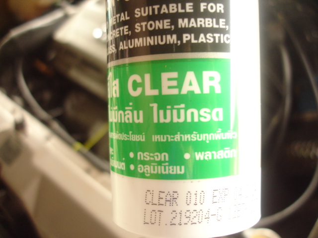 เตรียมซิลิโคนไว้แล้วไปซื้อมา 165 บาท ที่โกลบ.. เป็นแบบไม่มีกลิ่น และไม่เป็นกรดกัดรถ กะว่าจะตัดแกลลอนน้ำมันเครื่องมาปิดแล้วก็ยิงซิลิโคนรอบๆ