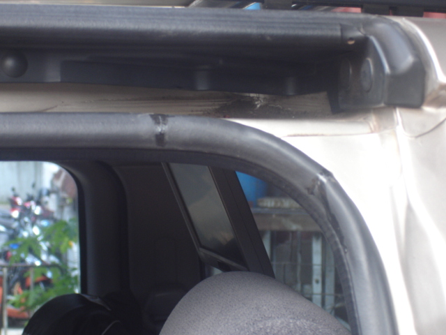 รอยผ่าที่ใช้คัตเตอร์ตัดแล้วเอากาวร้อนเชื่อมคืน หลังจากสอดท่อยางเข้าไปในยางขอบประตูแล้ว