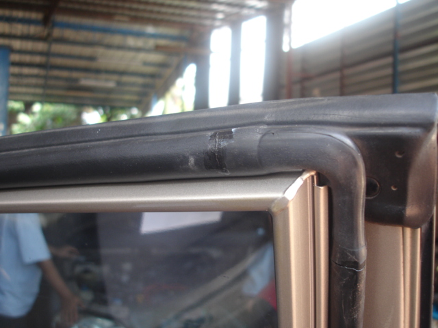 อันนี้เป็นประตูหน้าครับ แต่ประตูหน้าจะสอดมุมไม่ได้คับ ผมตัดก่อนถึงยางตันตรงมุมประมาณ 2 เซนติเมตรเพื่อเอาไว้สอดให้ทะลุกันครับ ผมจะไม่ให้ท่อน้ำมันที่เป็นรอยต่ออยู่ตรงรอยตัดของยางขอบประตูครับ