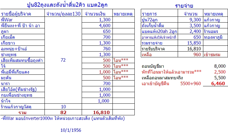 รายรับบริจาคกับรายจ่ายตามนี้ครับพี่War
