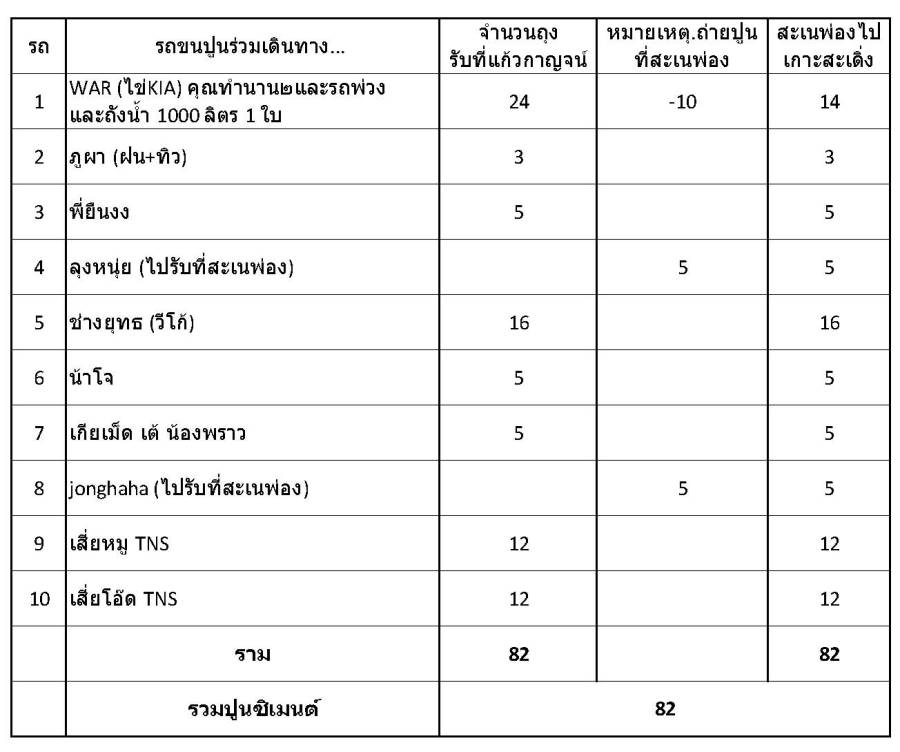 - ขนปูนซิเมนต์รวม 82 ถุง แบ่งเป็นปูนปอร์ตแลนด์ 72 ถุง และปูนก่อฉาบ 10 ถุง...