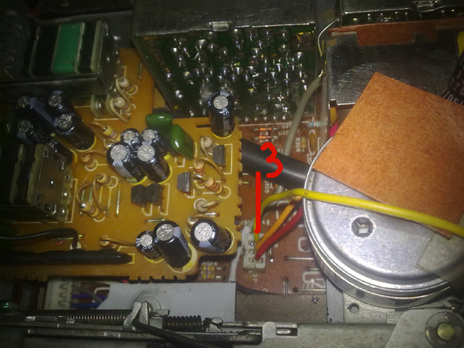 ถ้าไม่ดังก้อสลับขั้ว เลข 2 คือสัญญาณมาจากหัวเทป ครับ