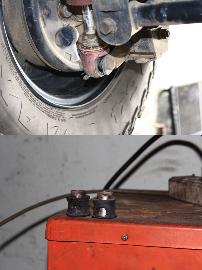 บรรทุกเป้หลายๆ ใบ จนท้ายห้อย และก็วิ่งขึ้นลงทางทุระกันดาร 14 กม. ไปกลับ 3 เที่ยว ไม่รู้ว่ามีผลต่อยางรองอย่างที่เห็นหรือไม่ครับ