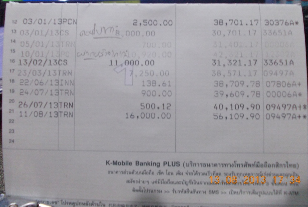 ช่วงนี้ยังไม่มีทริปหรือของบริจาคจึงนำเงินสดที่ถือไว้ 7,250 บาทเข้าเก็บไว้ในบัญชีชมรมก่อนครับรวมเป็น 38,571 บาท