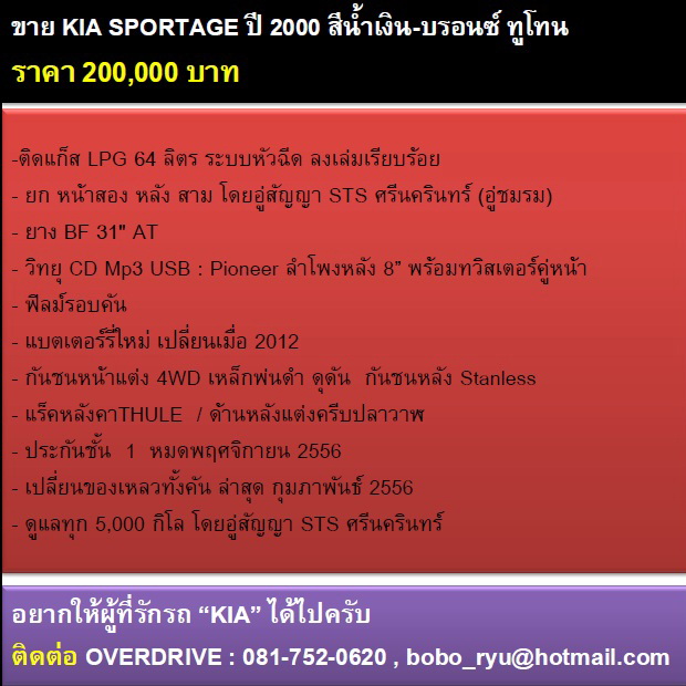 ขาย KIA SPORTAGE ปี 2000 สีน้ำเงิน-บรอนซ์ ทูโทน ราคา 200,000 บาท