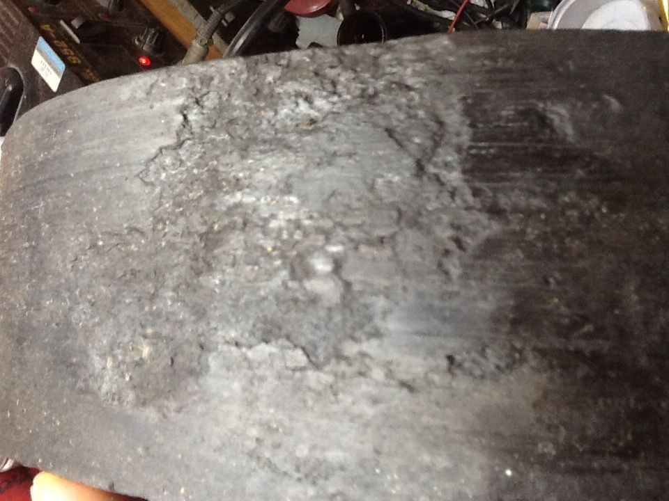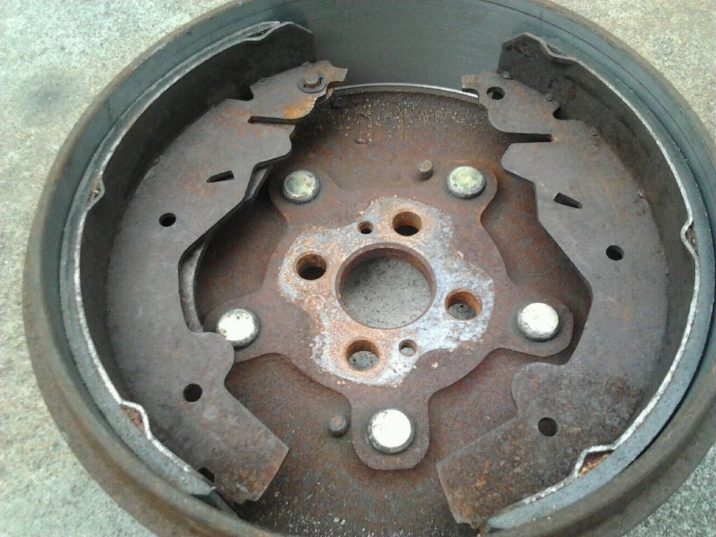 ส่วนของผมตอนได้รถมา เจ้าของเก่าบอกว่าเบรคทำมาหมดแล้ว ผมเห็นว่าเบรคหน้ายังหนามาก และเข้าใจไปเองว่าเปลี่ยนทั้งหน้า หลัง ก็ใช้มาจน น้ำมันเบรครั่วที่กระบอกเบรคหลังจึงถอดดู สภาพเละมากครับ จานเคยเจียร์มาแล้ว ยังไม่ได้ไปให้ร้านเจียร์จานดูว่าเจียร์อีกได้หรือไม่ครับ และรูปนี้คือสภาพผ้าที่แตก ร่อนครับ