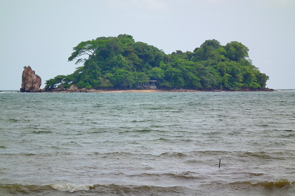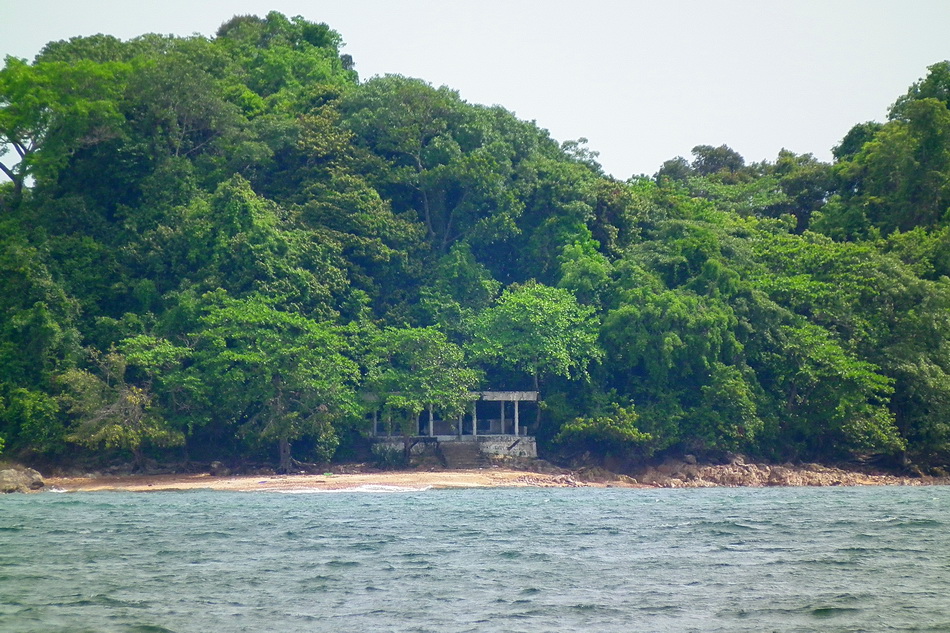 มีชายหาดเล็กๆ และอาคารอะไรสักอย่างแต่ดูเหมือนไม่มีคนอยู่