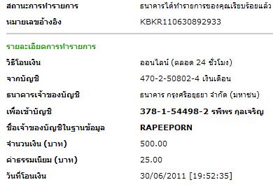 ผบ.โอนไปแล้วจ้าแอมมี่เมื่อตอนเย็น 300บาท