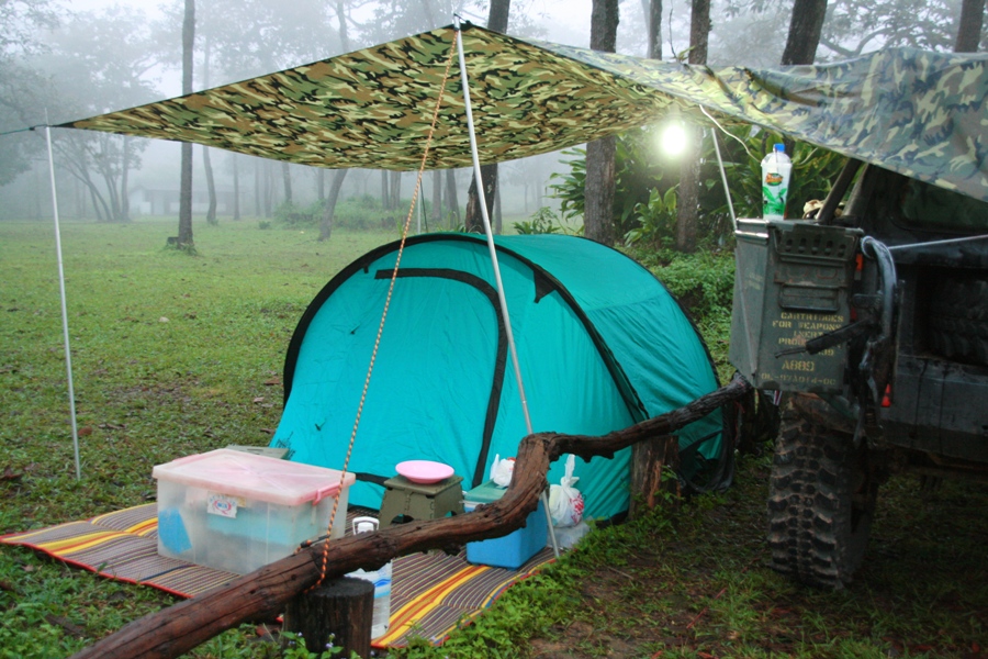 กางฟรายชีตจากหลังคารถคลุมเต้นท์เลย...