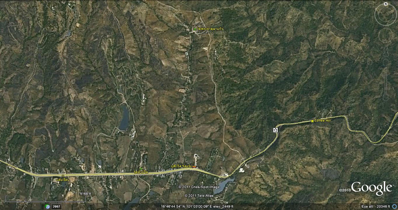 จากเขาค้อวิ่งไปทางไร่บีเอ็น เลยไปจนชนกับเส้นไปพิษณุโลก เลี้ยวขวาไปอีกไม่ไกล จะมีซอยแยกทางฝั่งซ้ายเข้าไปที่วัดครับ