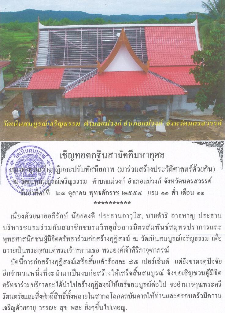 ... เชิญร่วมเป็นเจ้าภาพทอดกฐินสามัคคีสมทบทุนสร้างกุฏิ ณวัดเนินสมบูรณ์เจริญธรรม แม่วงษ์ นครสวรรค์ ...