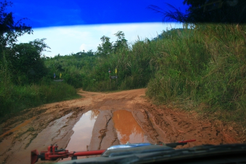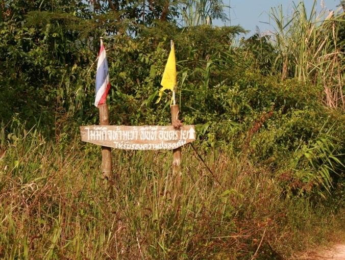 เส้นทางซ้ายเป็นชายแดนค่อนข้างอันตราย เลยมีป้ายเตือนไว้