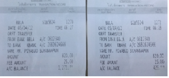 โอนเงินให้เมื่อวานนี้แล้วครับ (4/4/12) เวลาประมาณ 7 โมงเช้า จำนวน 820.20 บาทครับ