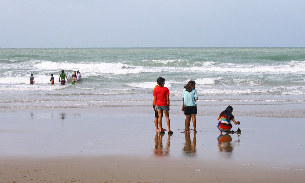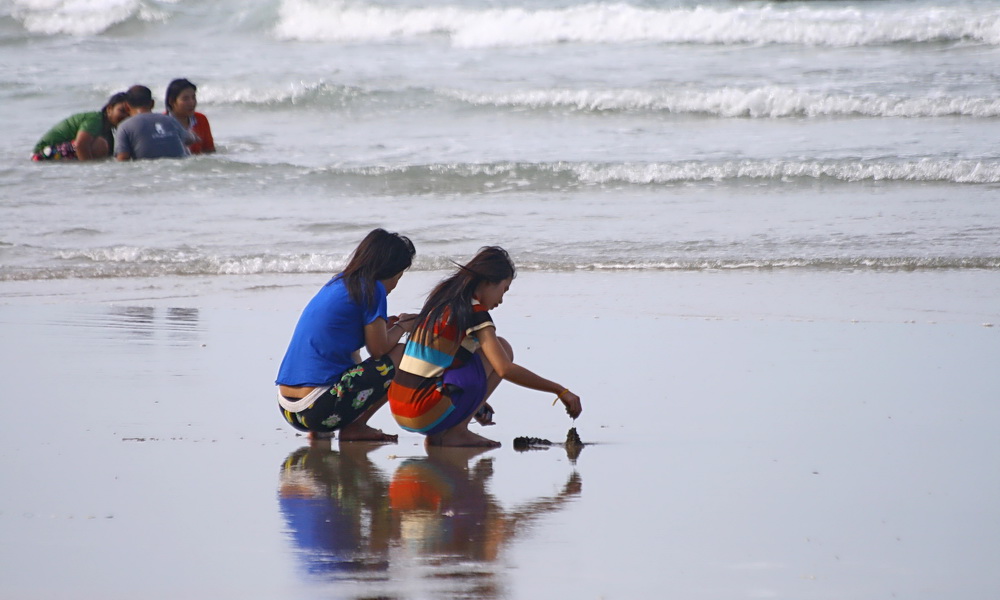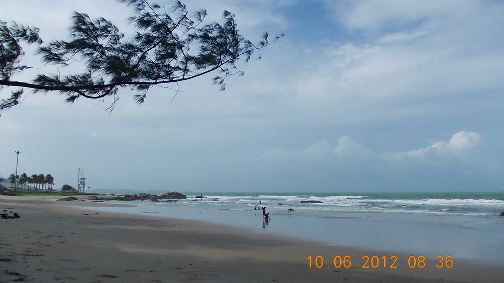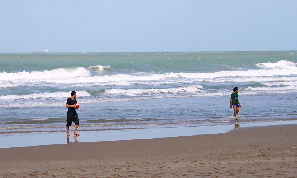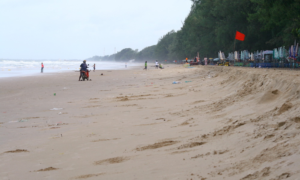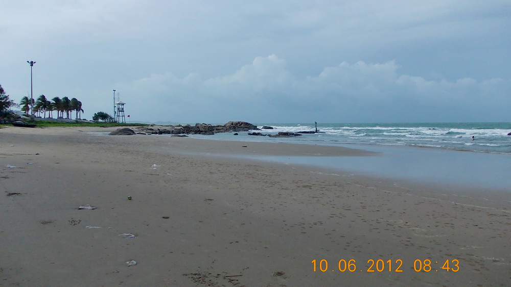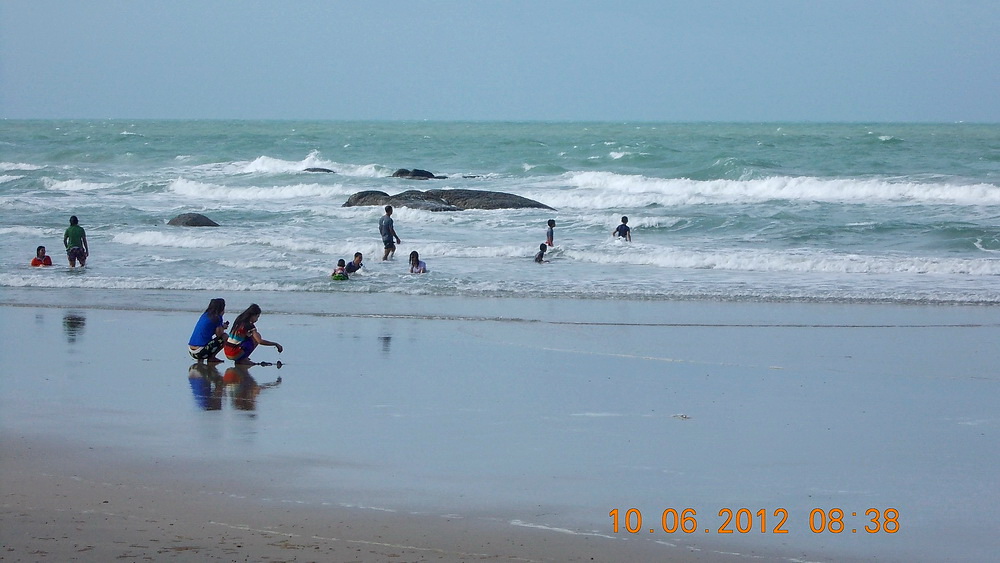 แต่เมื่อน้ำลงคลื่นก็อยู่ห่างจากฝั่ง จึงมีหาดทรายกว้างๆให้เดินเล่น