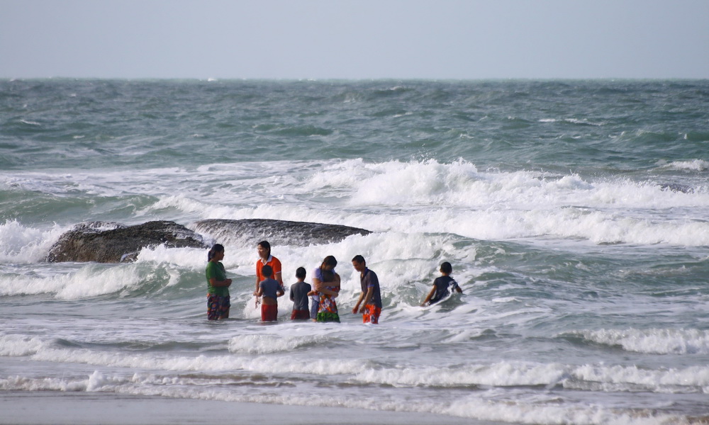 มีทั่งเล่นคลื่น และนั่งรับลมบนหินขาว