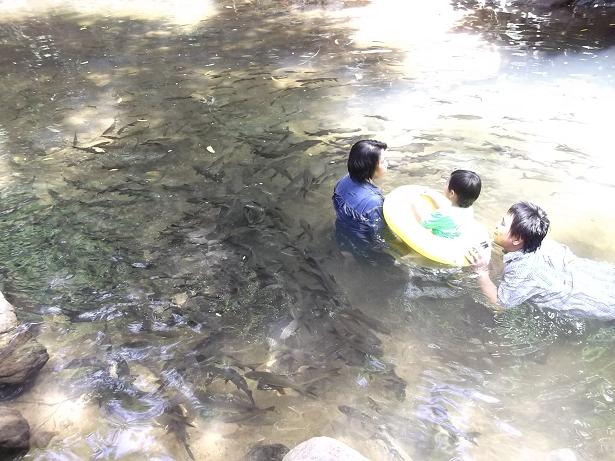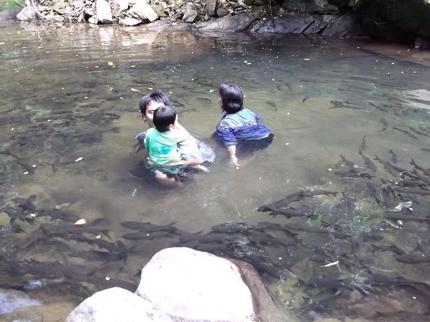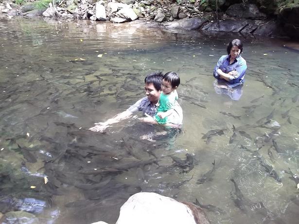 ปลา ตัวใหญ่ๆ เยอะมากๆ เป็นปลาธรรมชาติ ตามน้ำตก