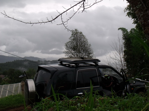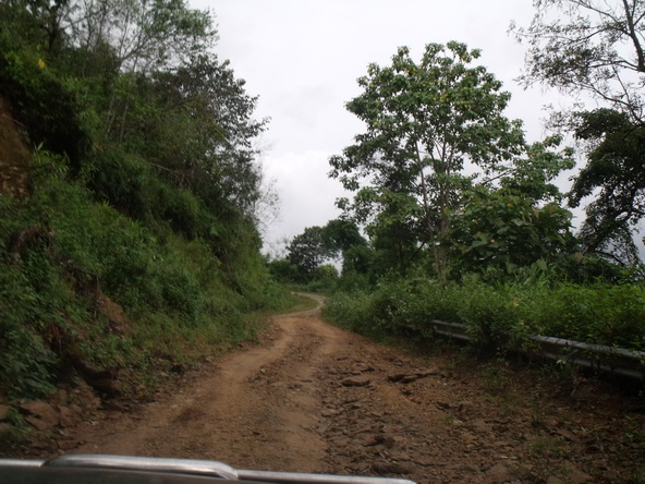สภาพเส้นทางเป็นถนนลูกรัง สลับดินแดง และคอนกรีตเป็นช่วงๆ ขณะเดินทางเวลา 13.00 น. ฝนเริ่มโปรยปราย ติดโฟร์ขึ้นสบายๆ