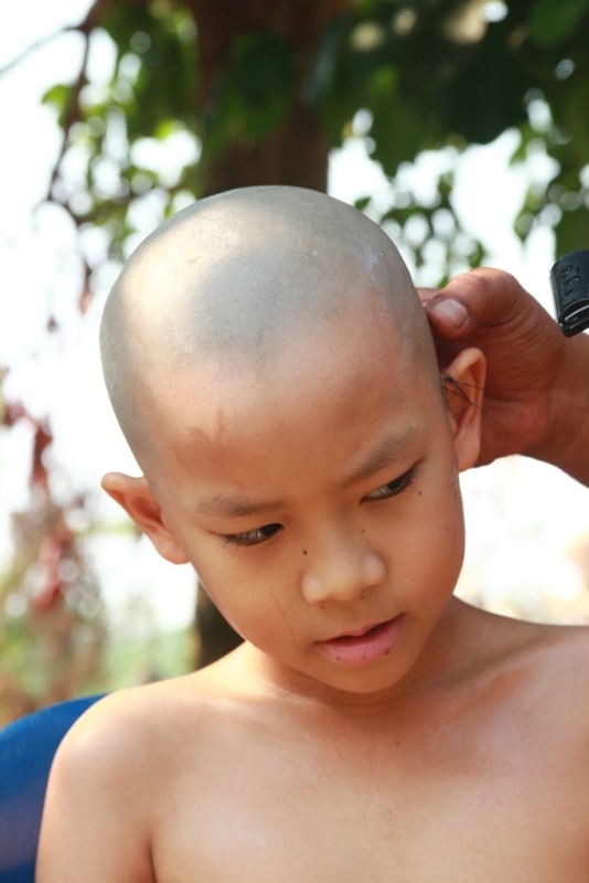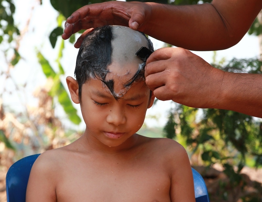 ให้พระอาจารย์ที่วัดป่าแดงโกนผมให้