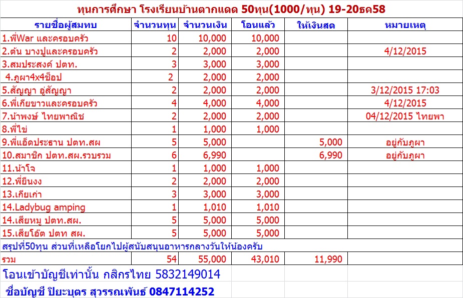 ท่านใดร่วมสมทบทุนแจ้งมาในนี้ได้เลยครับ...