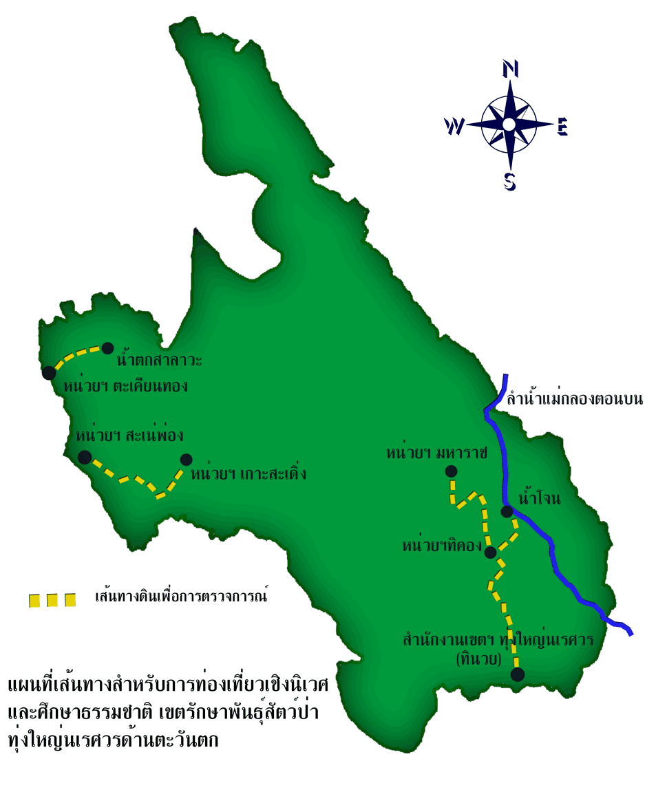 5. สำหรับเส้นทางทางน้ำไม่มีการอนุญาตให้มีกิจกรรมการท่องเที่ยวโดยเด็ดขาด เนื่องจากเป็นแหล่งหากินและอยู่อาศัยของสัตว์ป่าที่สำคัญหลายชนิด หากอนุญาตให้มีกิจกรรมการท่องเที่ยวจะส่งผลกระทบต่อการดำรงชีวิตของสัตว์ป่า