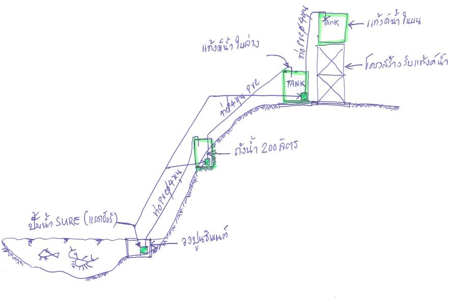 ต้องจัดหาปั้มน้ำ SURE (แรดชัวร์)เพิ่ม 1 ตัว และแท้งค์น้ำ 200 ลิตร 1 ใบ ตามรูป...