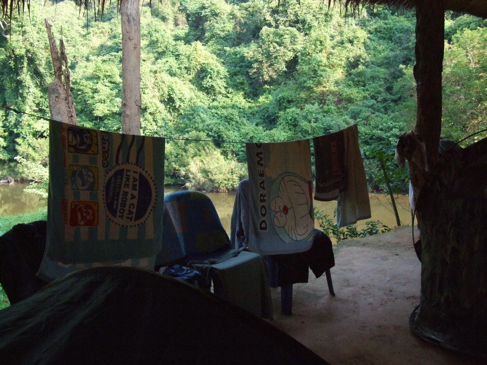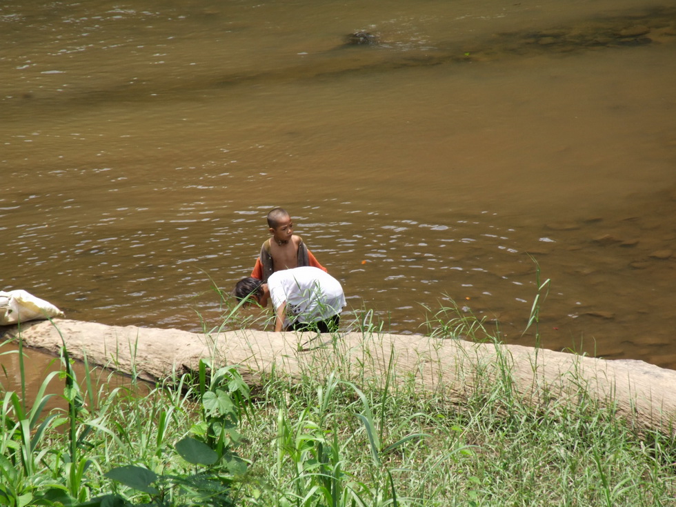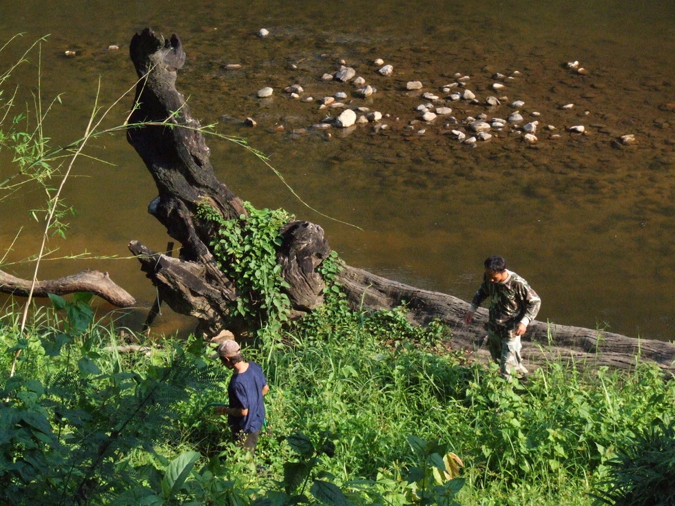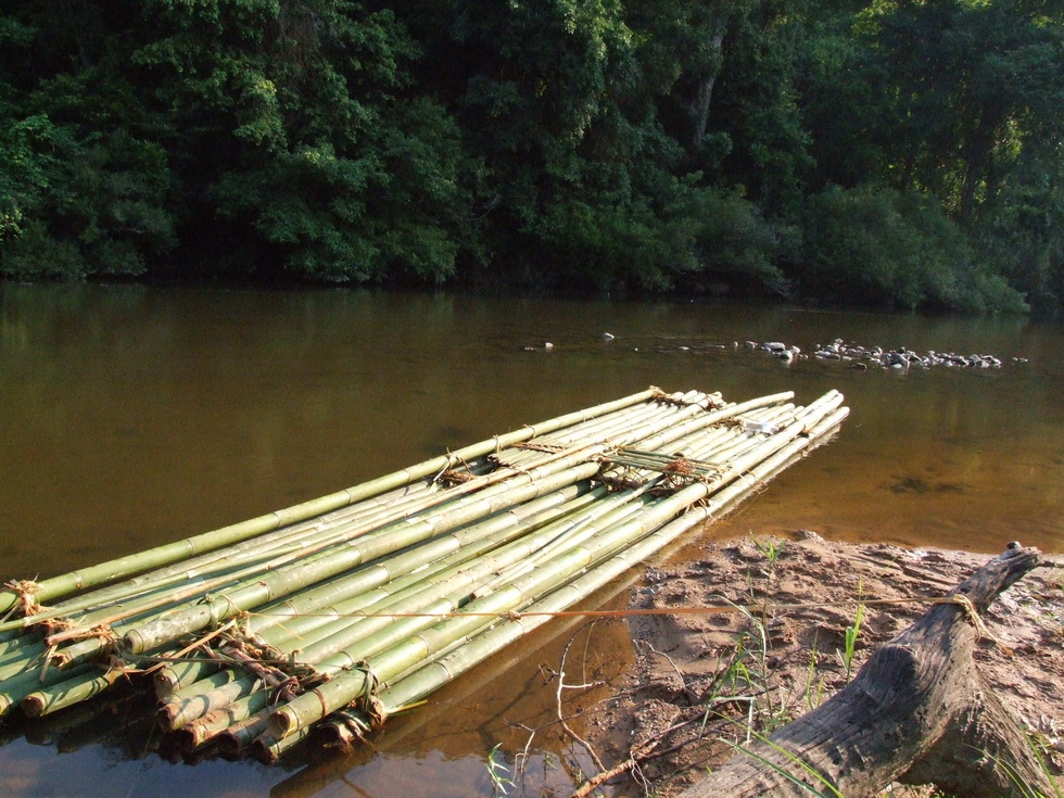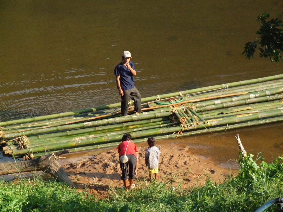 ไผ่ที่เจ้าหน้าที่ให้ชาวบ้านล่องมาสำหรับเตรียมทำโรงครัวใหม่