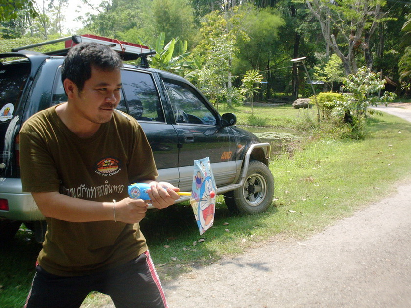 ยิงขึ้นฟ้าตลอด..เพราะต้องใช้นิ้วโป้งกด..เลยเปียกทั้งตัว...