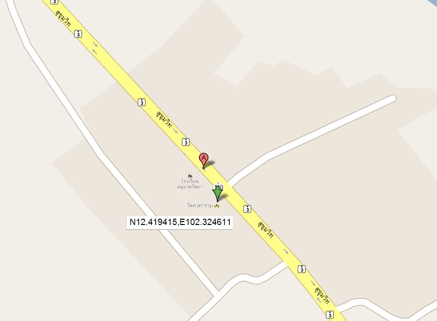 -เส้นทางจากสามแยกแกลงถึงวัดประมาณ 103 กม.(สุขุมวิทหมายเลข3)
