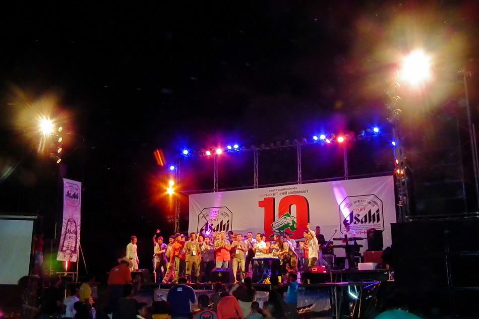 บนเวที มีการร้องเพลงและตัดเค๊ก ฉลองครบรอบ 10 ปี 22นอ