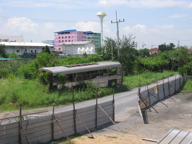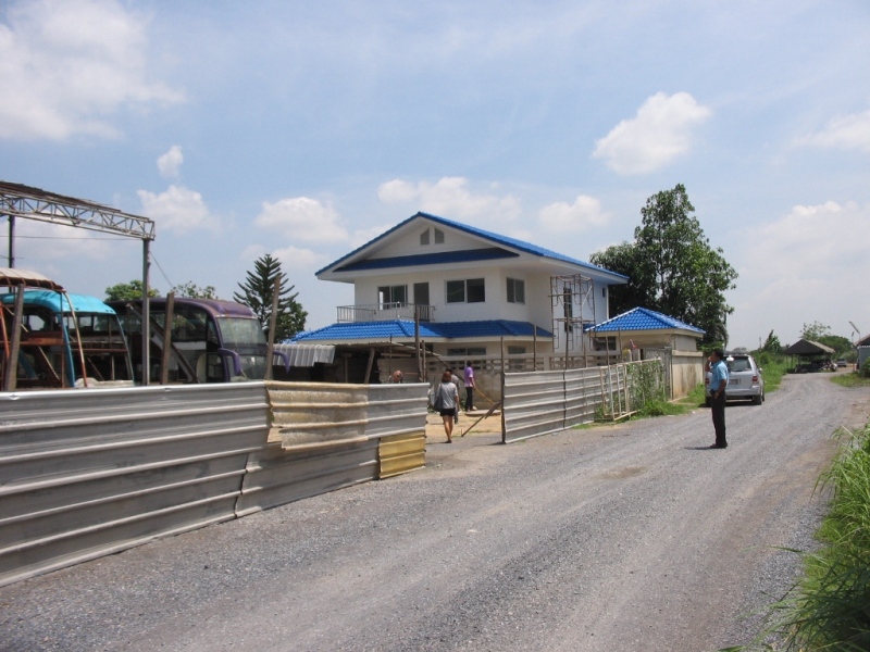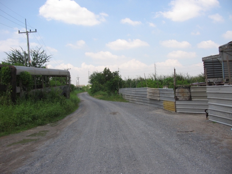 ทางเข้าสังเกตุง่าย รถบัสร้างจอดอยู่