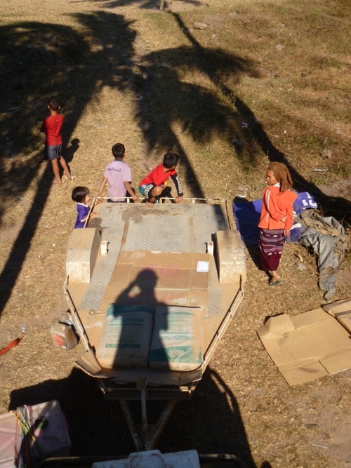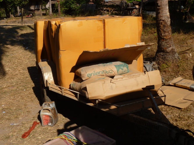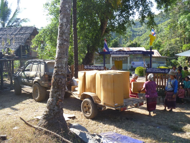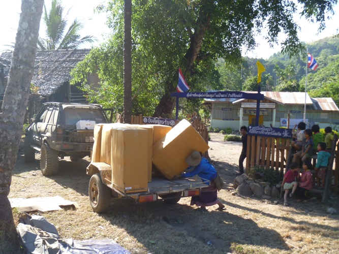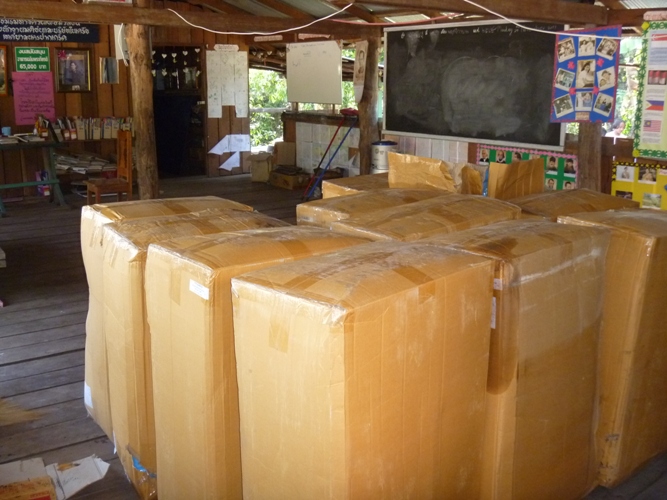 เตรียมขนของเข้าไปไว้ในโรงเรียน...