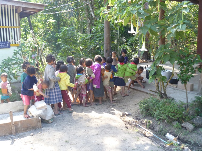 ------- และมอบหนังสืออ่านเพื่อความรู้รอบตัว ให้ รร ศศช "แม่ฟ้าหลวง" บ้านต๊ะโต๊ะโกร 1 ชุด (ฝากครูบ้านทีจือหล่อคีไปมอบให้)