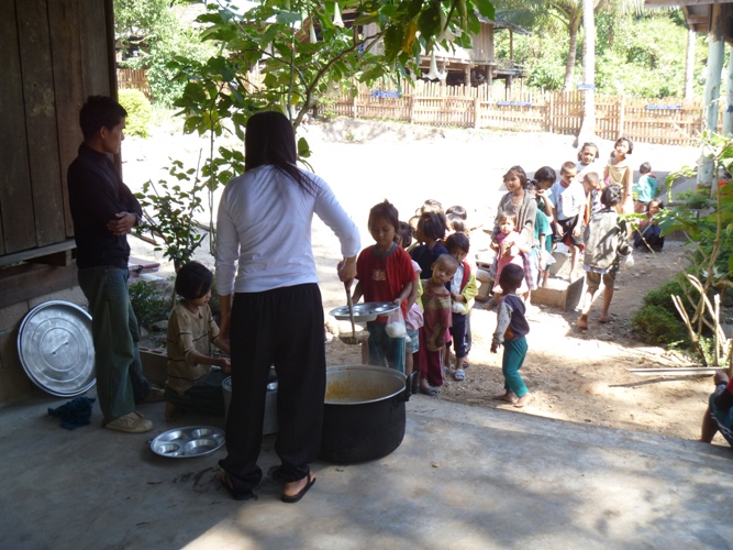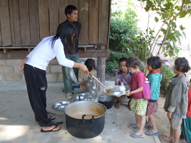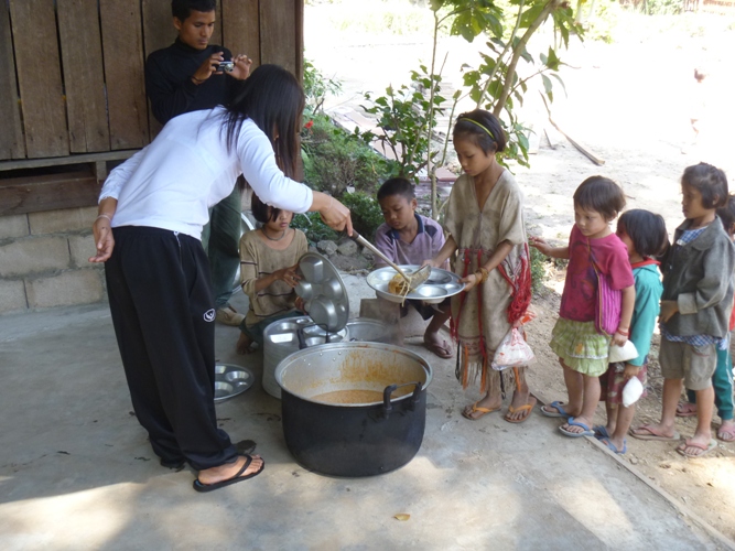 ครูกิ่งตักแจกนักเรียนไปเรื่อยๆ...