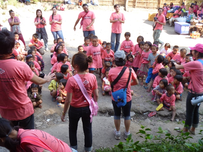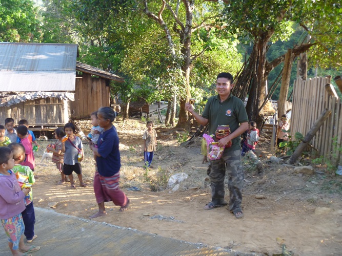 ท่านเจ้ากรมฯ แจกขนมที่ทำงานฝากมา ให้เด็กที่บ้านแม่หละโพคี...