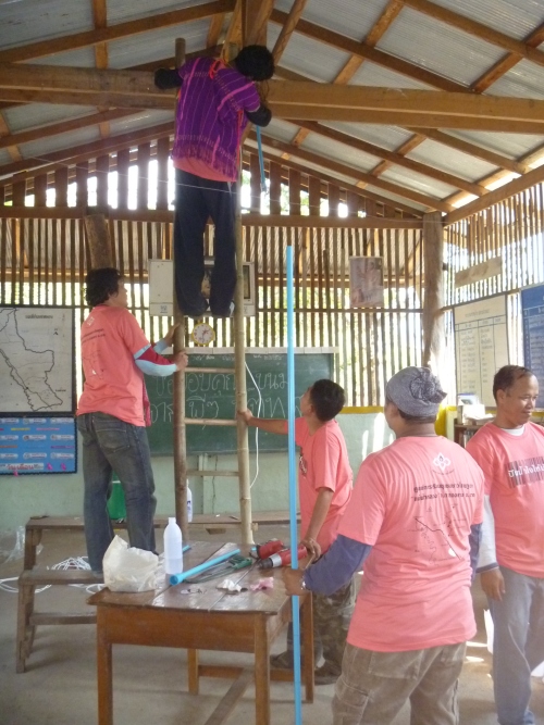 หนุ่มชาวกระเหรี่ยง กำลังเดินไฟให้โรงเรียน...