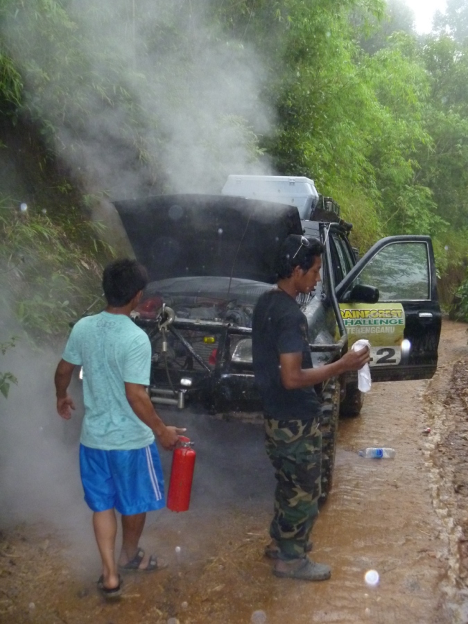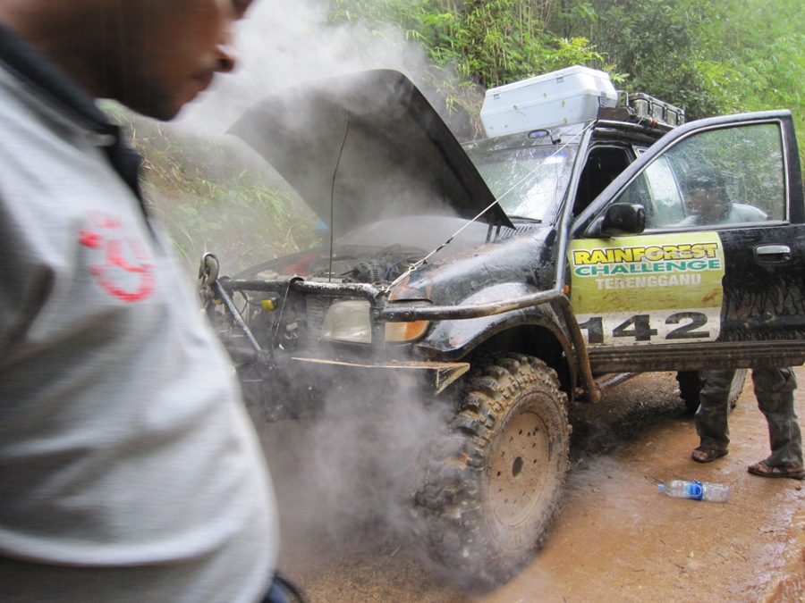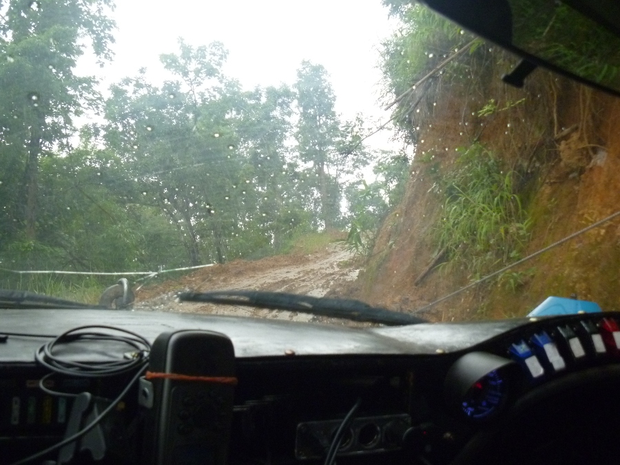 ฝนเทลงมาอีกแล้ว เพิ่มความลื่นของทางขึ้นอีก...