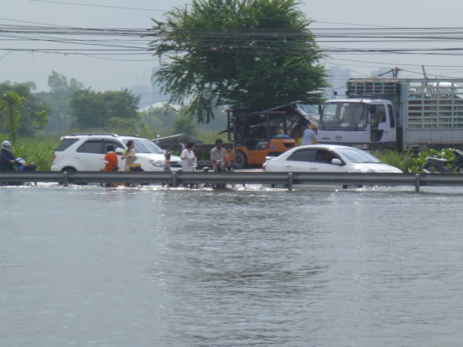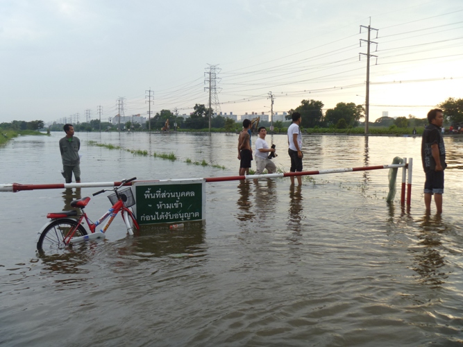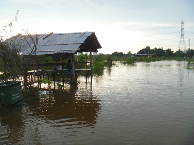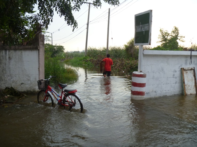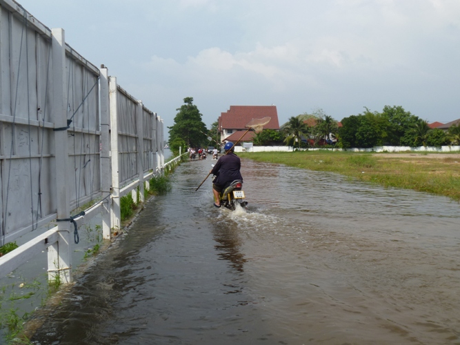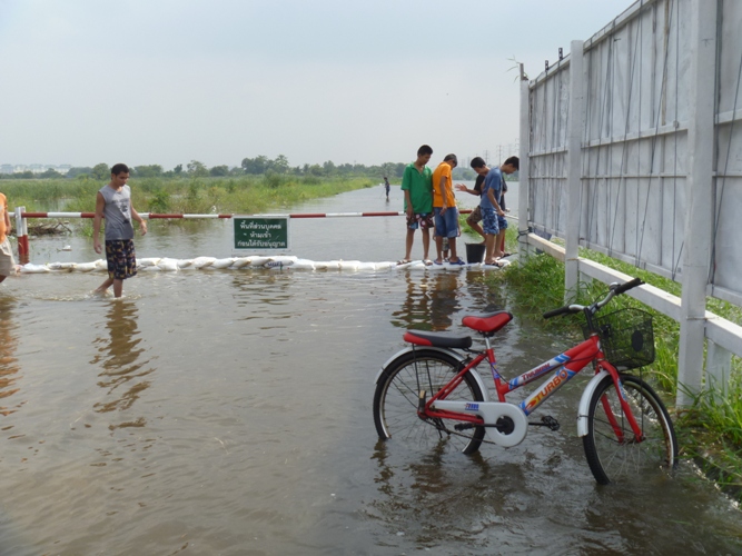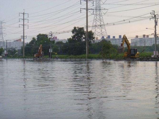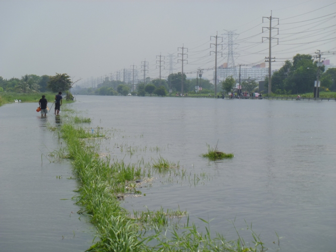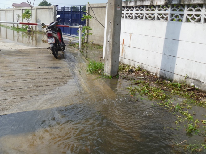 ถนนริมคลองประปา ที่แห้งเมื่อเช้าก็ท่วมแล้ว มองไปอีกด้าน...