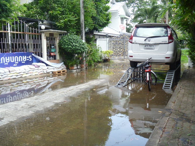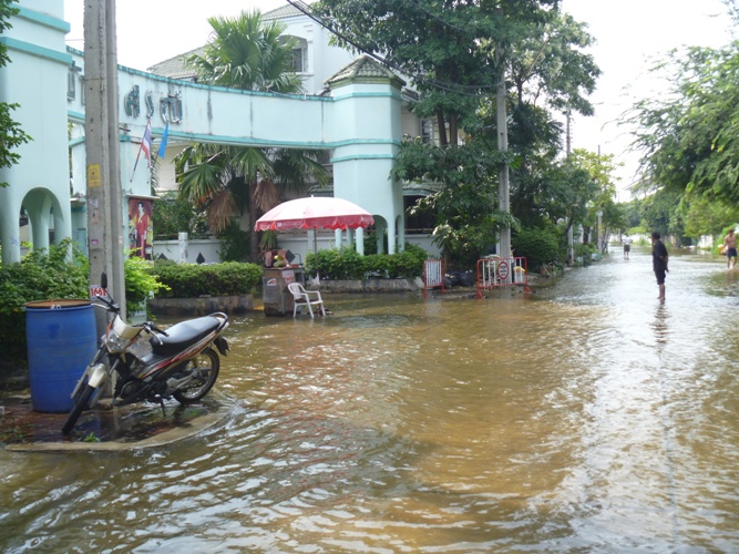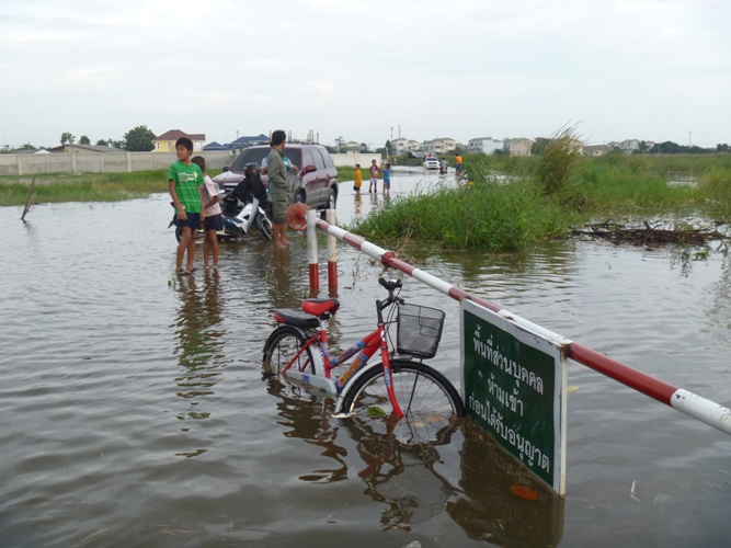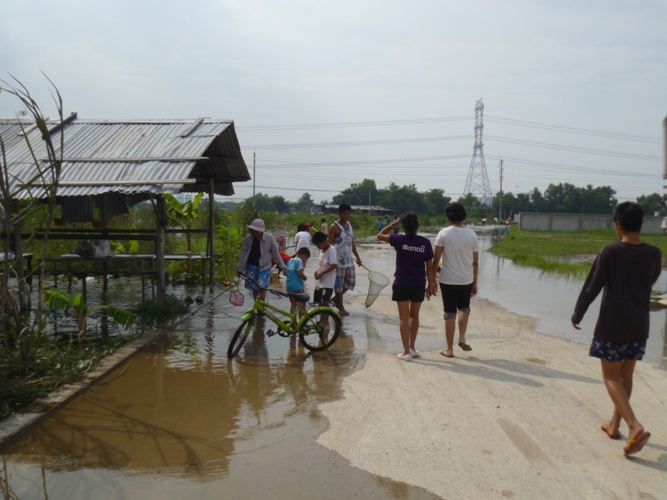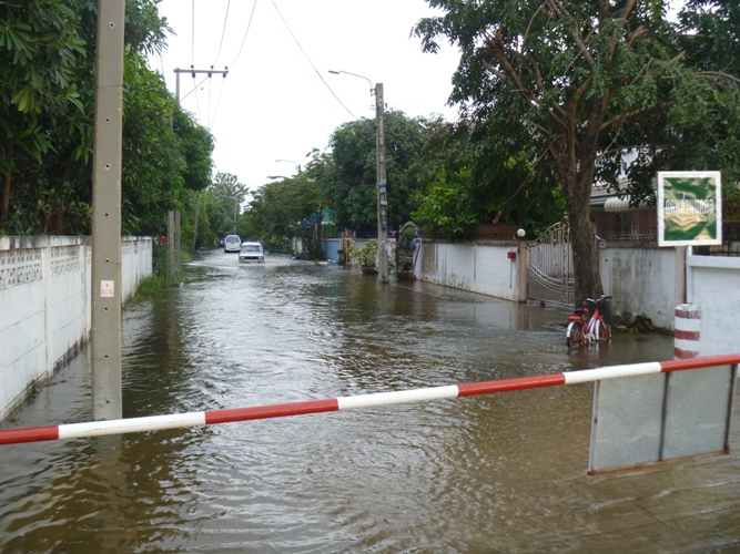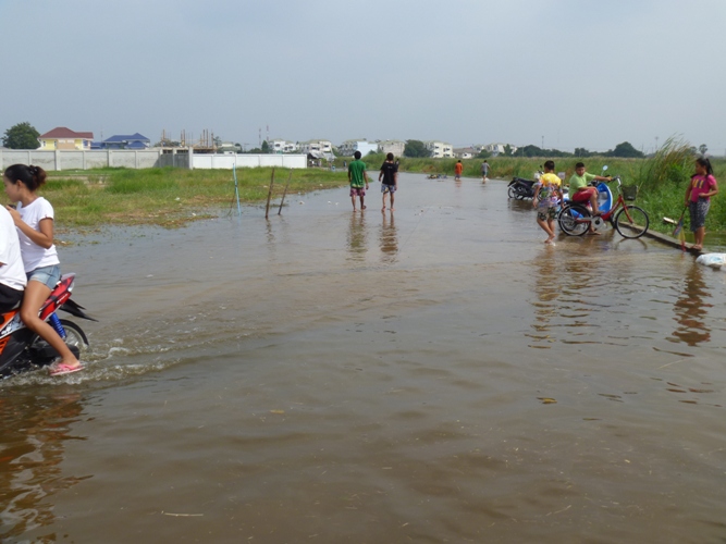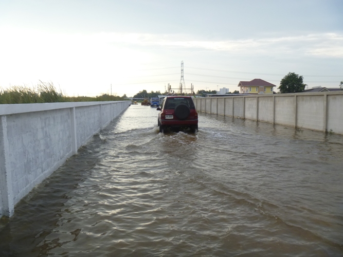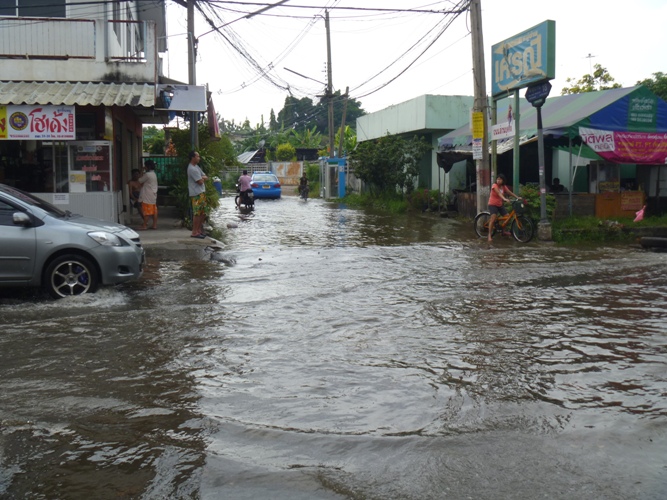 ถนนหมู่บ้านใหม่สูงๆยังท่วม...