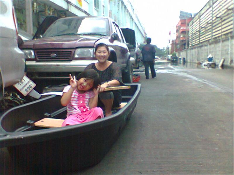 (อู่ช่าง ย. น้ำมาถึงกลางซอยแล้ว..แต่ไม่กลัวเพราะเตรียมเรือไว้ให้ลูกเมียเรียบร้อยแล้ว)