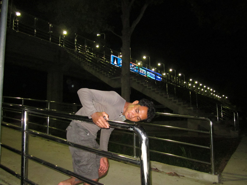 ระหว่างรอเพื่อนๆหม่ำอาจารย์ชัยรัตน์ข้องใจว่าเป็นสแดนเลตหรือเหล็กชุบเพราะเป็นสะพานลอยที่ยาวมากๆ