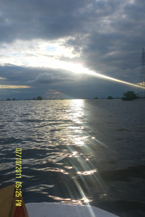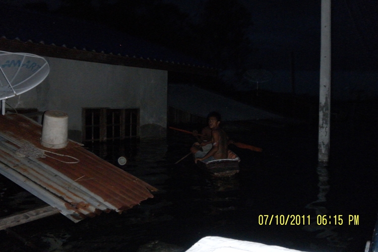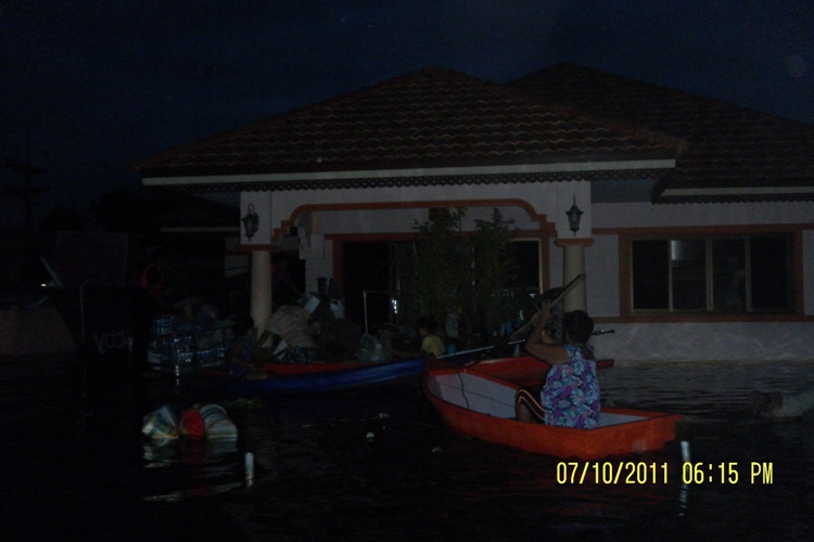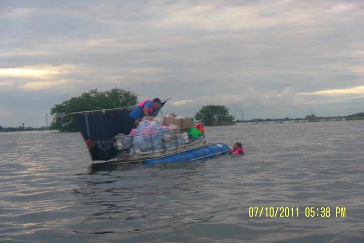แล้วดึงแพไปที่บ้านคุณกฤษ ชาวบ้านหนองแก้ว บนถนนน้ำลึกท่วมหัว...
