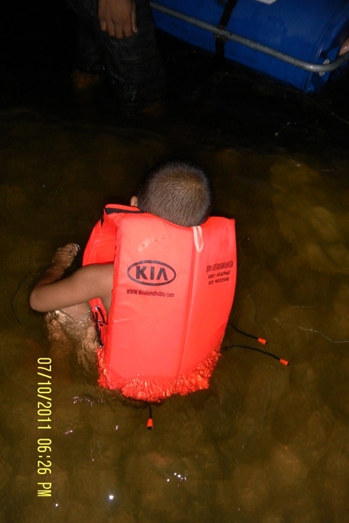 เด็กได้เสื้อชูชีพแล้วใส่ทันที...