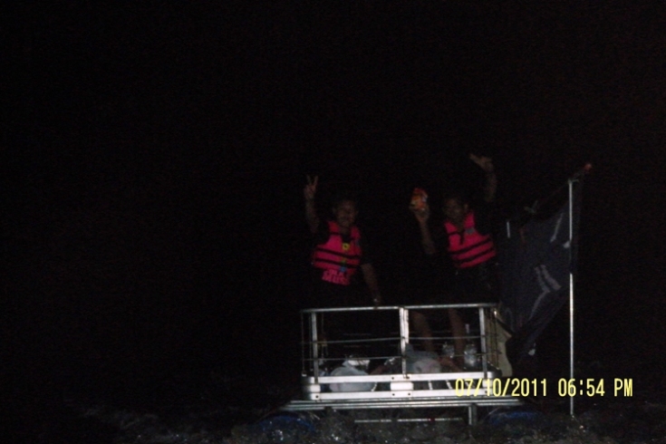 ตอนแรกตั้งใจจะกระโดดขึ้นแพไปด้วยแล้ว...แต่เห็นแพรับน้ำหนักเยอะแล้วเลยไม่ได้ไป...