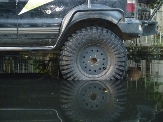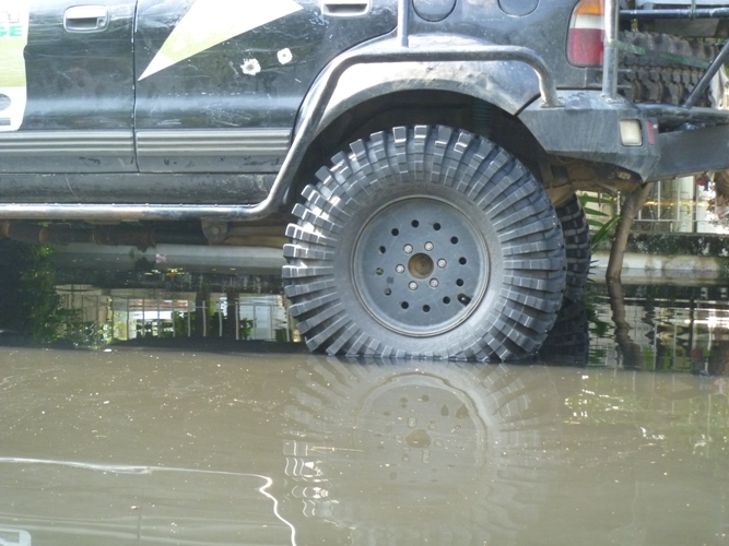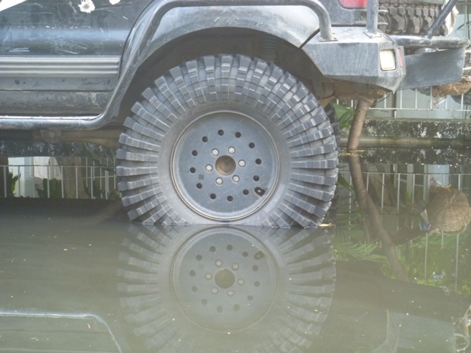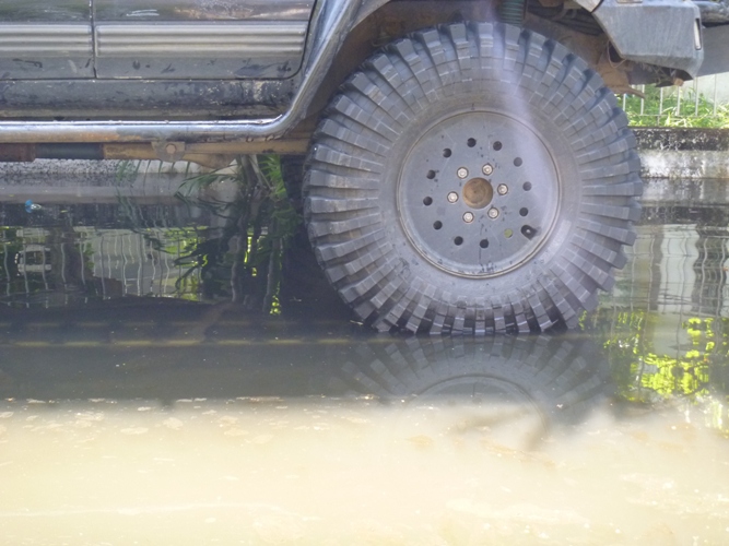 กลับถึงบ้านน้ำขึ้นระดับนี้แล้ว เทียบจากล้อของคุณทำนานนายแบบ...