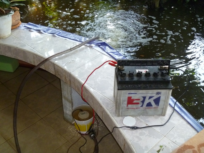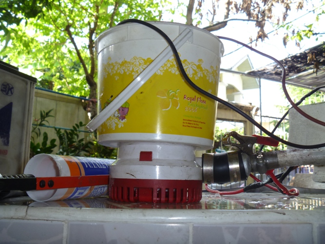 ปั้มจุ่มต้องจมน้ำตลอด แต่ระดับน้ำน้อยเอากระป๋องน้อยเจาะตูดและยาซิลิโคลนไว้ขังน้ำระบายความร้อน...