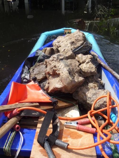 เอาเรือมาขนดินเหนียว ตอนนี้น้ำสีดำมากน่าจะมาจากคลองเปรมไหลแรงและทิศทางการไหลไปทางคลองประปาทั้งซอยข้างหมู่บ้านและที่กำแพงล้ม...